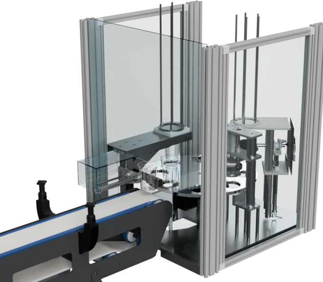 De machine beschikt over 8 posities en 4 stations en automatiseert het volledige proces:
